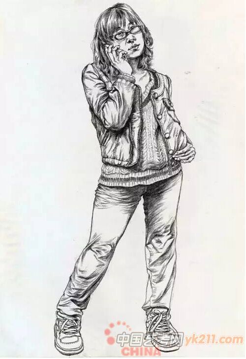 看学生初画人物速写是一件“很有意思”的事儿——一是软,二是狠,三是懒,整个就是“矛盾论”的典型注解。开始动笔前,学生会发呆一阵子,看似观察,其实是在观望,心软手也软,铅笔在纸上晃来晃去,就是不敢下笔。其实大多数就是不知道怎样下第一笔,一旦落笔下去,学生还挺“狠”,心里没有多大的把握,却义无反顾地画出又粗又黑的重色笔迹,根本不给自己留修改的余地。就是发现错了,往往也是“将错就错”。这又体现出学生的“懒”:观察不到位,探究不深入,表现不熟练,又想像大师那样一气呵成,一步到位,懒得思考,懒得修改,这些都不是好习惯。