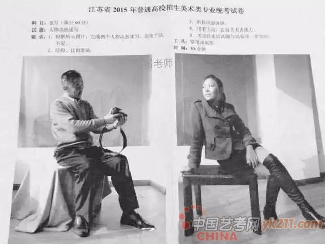 2012年:默写,女青年坐姿,自然刘海,直发马尾辫,免冠,不戴眼镜,身着冬天穿的棉大衣(短款)或羽绒服(短款),牛仔裤,运动鞋,左手扶着膝盖,右手自然放在腿上,左脚在前,只能画正面或斜45度角,不能画背面。(30分钟,8开)
