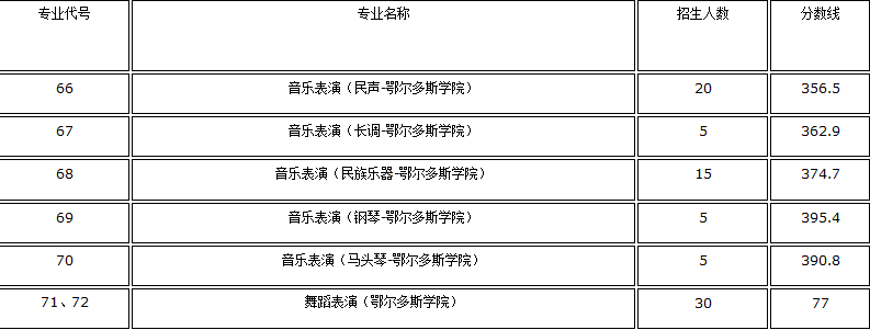 内蒙古大学鄂尔多斯学院2012年艺术类招生专业分数线总表